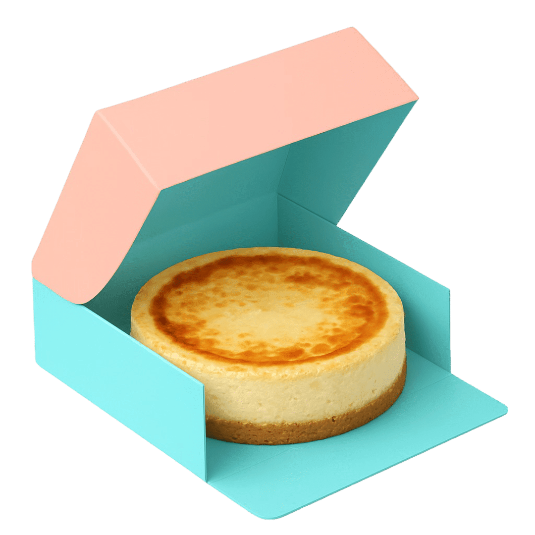 Aprovecha ahora la promoción de tus cajas redondas premium especiales para hornear para tus tartas de queso impresas con tu logo.